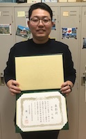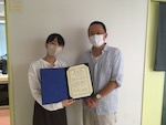 卒業研究成果を評価頂き、和泉くんが愛化賞を受賞しました。