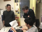 北野勝久先生(阪大)、井川聡先生(産技研)が研究打ち合わせ&実験指導に来訪されました。有難うございました!また、卒業生の村上くんもかけつけてくれて、