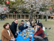松山城で花見をしました。夜景と夜桜が素晴らしかったです!