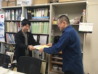 吉村君が、修士2年間の研究が評価され、日本化学会中国四国支部支部長賞を授与されました。ナノ粒子グループを引っ張ってくれ、素晴らしい成果を出しました。
