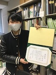 矢野君が、修士2年間の研究が評価され、日本化学会中国四国支部支部長賞を授与されました。丁寧な条件検討で、素晴らしい成果を出しました。
